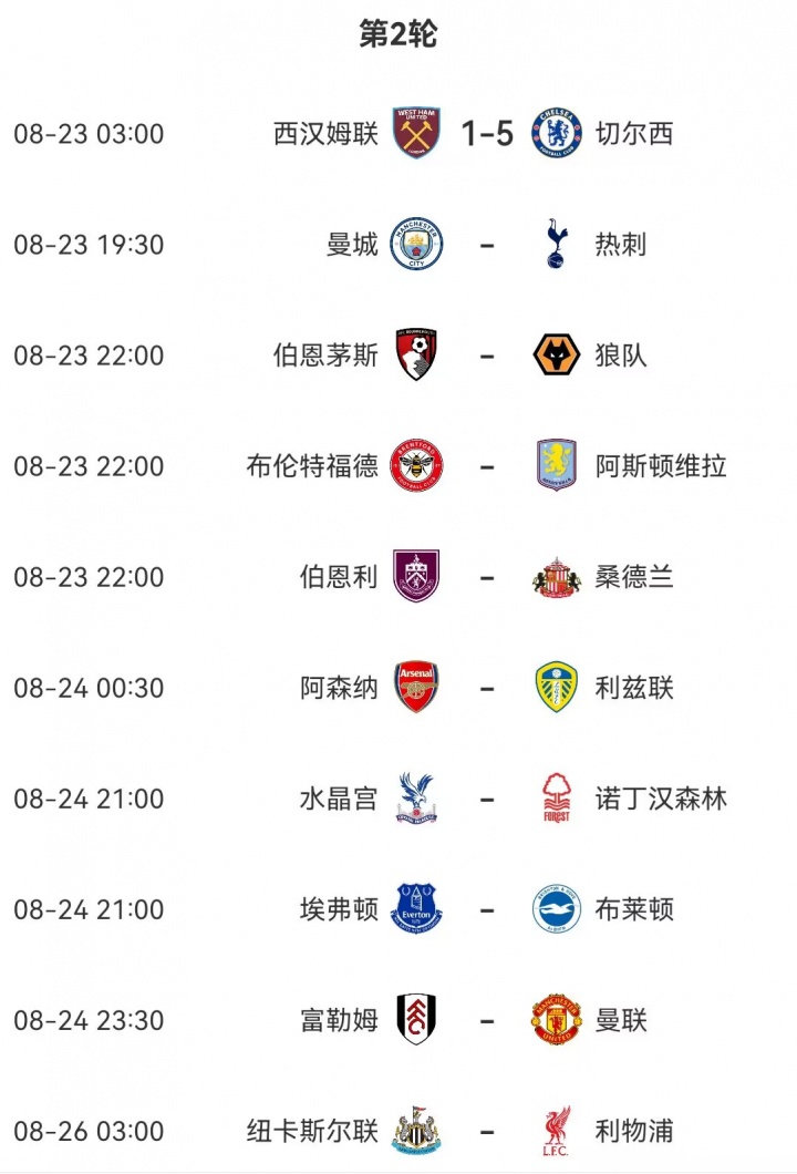 英超本轮赛程: