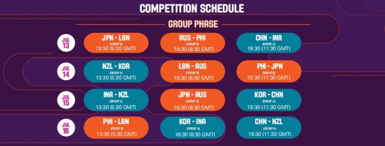 7月13日19:30 中国女篮vs印度尼西亚女篮;
