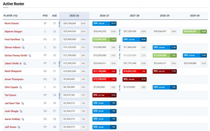 什么水平?火箭双向名额满了14+3名单:杜兰特+申京+阿门领衔